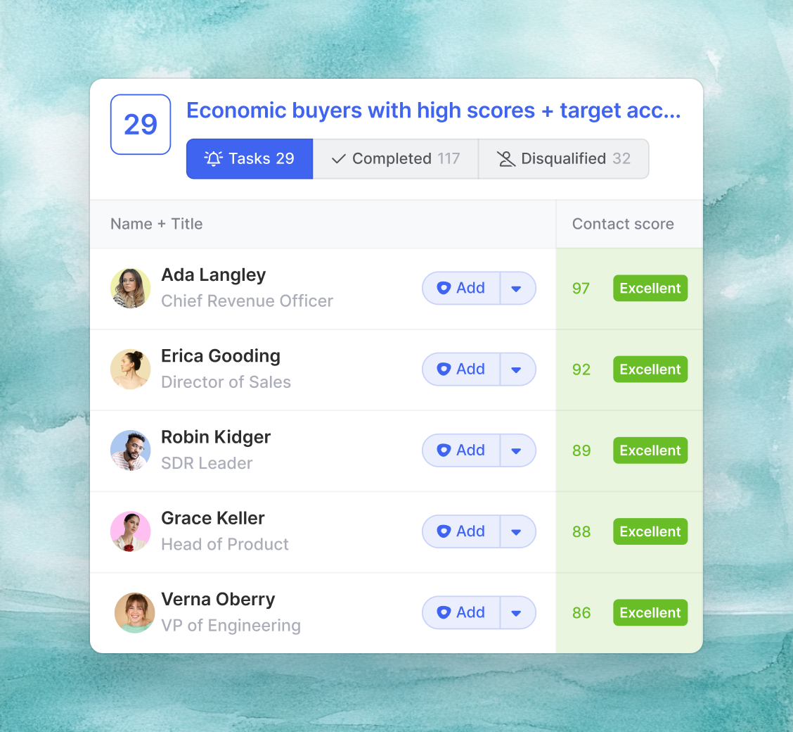 Turn every rep into a top performer by focusing their time and effort on the highest-scored prospects who are likely to convert.