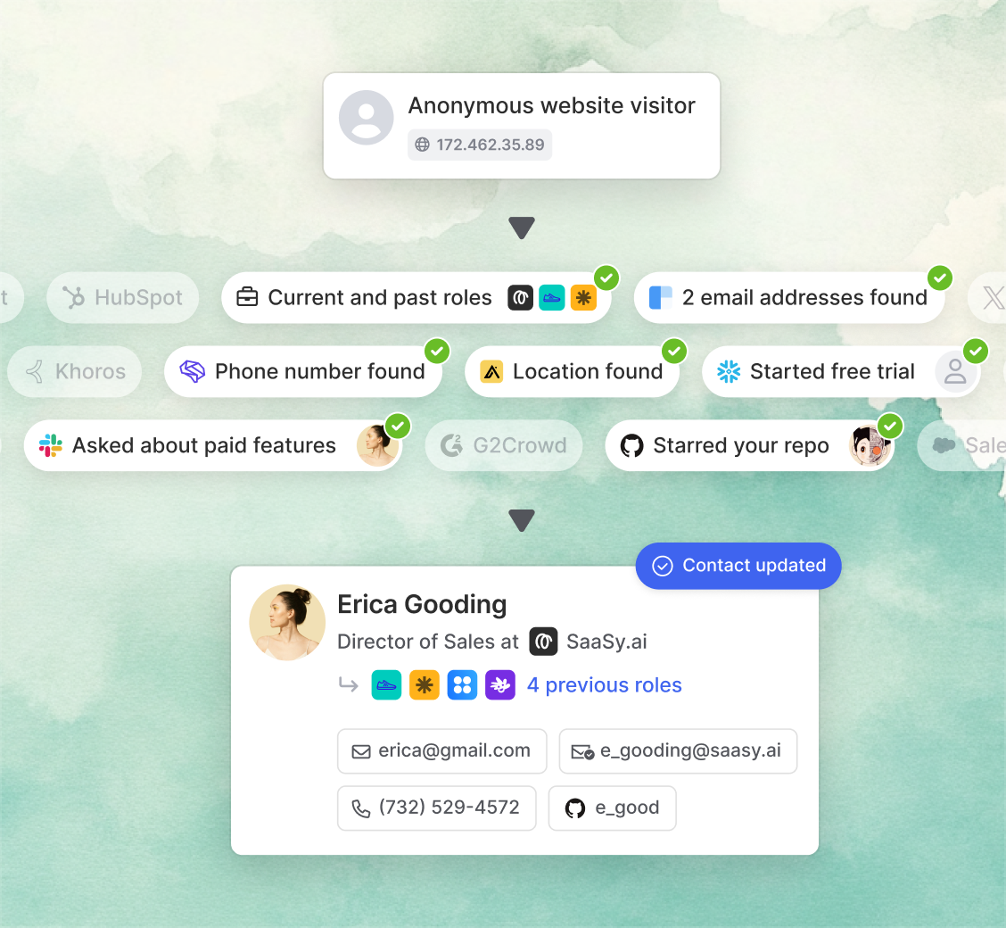 Enrichment is not accurate, limited, and a pain to maintain. Data is scattered across tools, making it impossible to get a holistic view.
